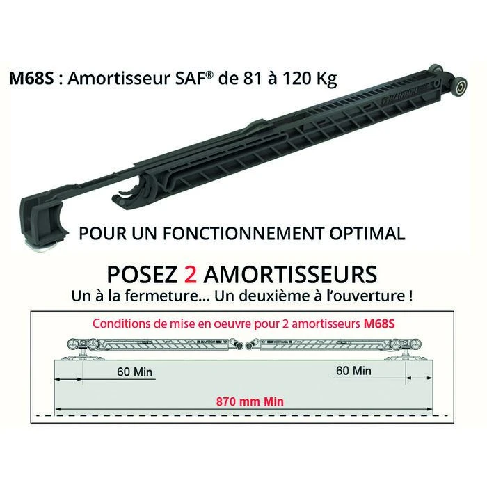 Système de butée amortisseur pour une ouverture et/ou une fermeture tout en douceur de la porte (sur 100mm).