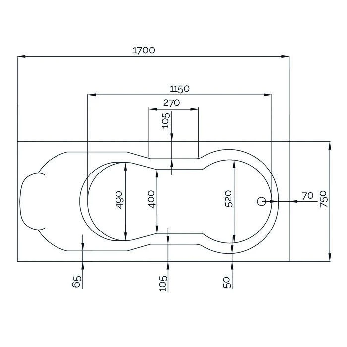 - Dimensions de la baignoire : 170 x 75 cm