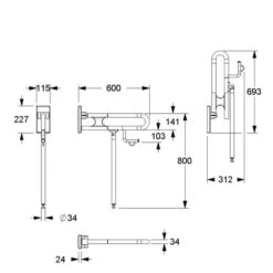 Barre D’appui Rabattable Avec Pieds Escamotable -600.x 800 Mm – Nylon Blanc – Vario – Normbau