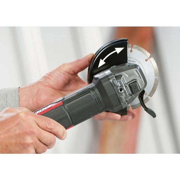 Puissant moteur de 850 W pour des résultats de coupe, meulage et ébarbage parfaitsPoignée latérale avec « VRS+ », un système de réduction des vibrations performant unique en son genre Interrupteur à palette pour une maîtrise optimale ; une faible pression suffit et l’outil s’arrête dès que l’interrupteur est relâchéPoignée latérale pouvant être montée dans trois positions pour une prise en main optimale dans toute situationCarter de protection avec système « Clic » réglable dans la position voulue en quelques secondesRoulements à billes étanches à la poussière pour une longévité élevée et engrenage hélicoïdal pour un maximum de puissance et un fonctionnement silencieuxCarter en métal compact et résistant facilitant l’accès aux endroits difficiles ou même étroitsBlocage de l’arbre pour un changement rapide d’accessoire