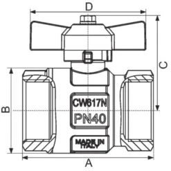 Vanne à Boisseau Sphérique 3 Voies Nickelé Type T – FFF 1″1/4 – Manette Plate Rouge – Itap
