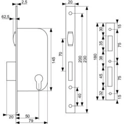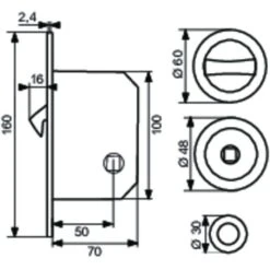 Boitier Serrure Larder Metal Interchangeable 1/2 Tour – Axe 21 Mm – Longueur 36 Mm – Thirard