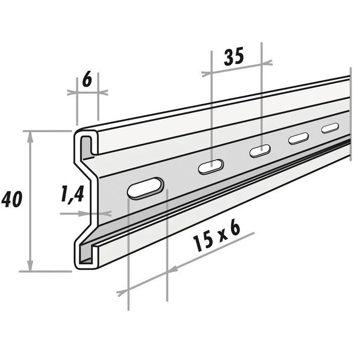 - Elément profilé de section 40 x 6 mm en acier galvanisé et percé