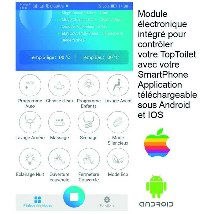 Il pourra s’intégrer très facilement dans votre pièce. Pour activer toutes les fonctionnalités de ce toilette japonais lavant Diamond, vous pourrez soit utiliser la télécommande fournie avec le toilette, soit piloter les fonctionnalités directement par votre smartphone, en téléchargeant l’application.