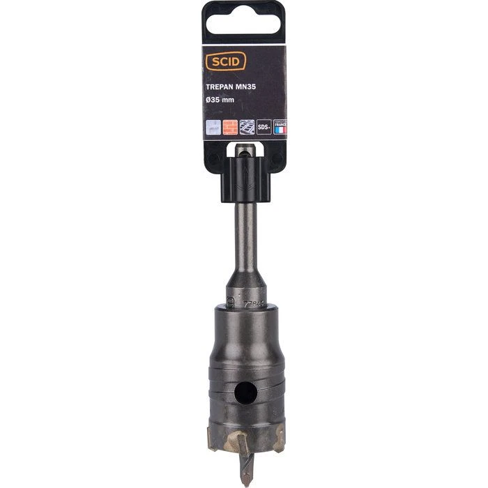Le trépan MN est conçu pour une utilisation intensive grâce à son corps en acier traité et ses dents en carbure en implantation inclinée pour plus de mordant.